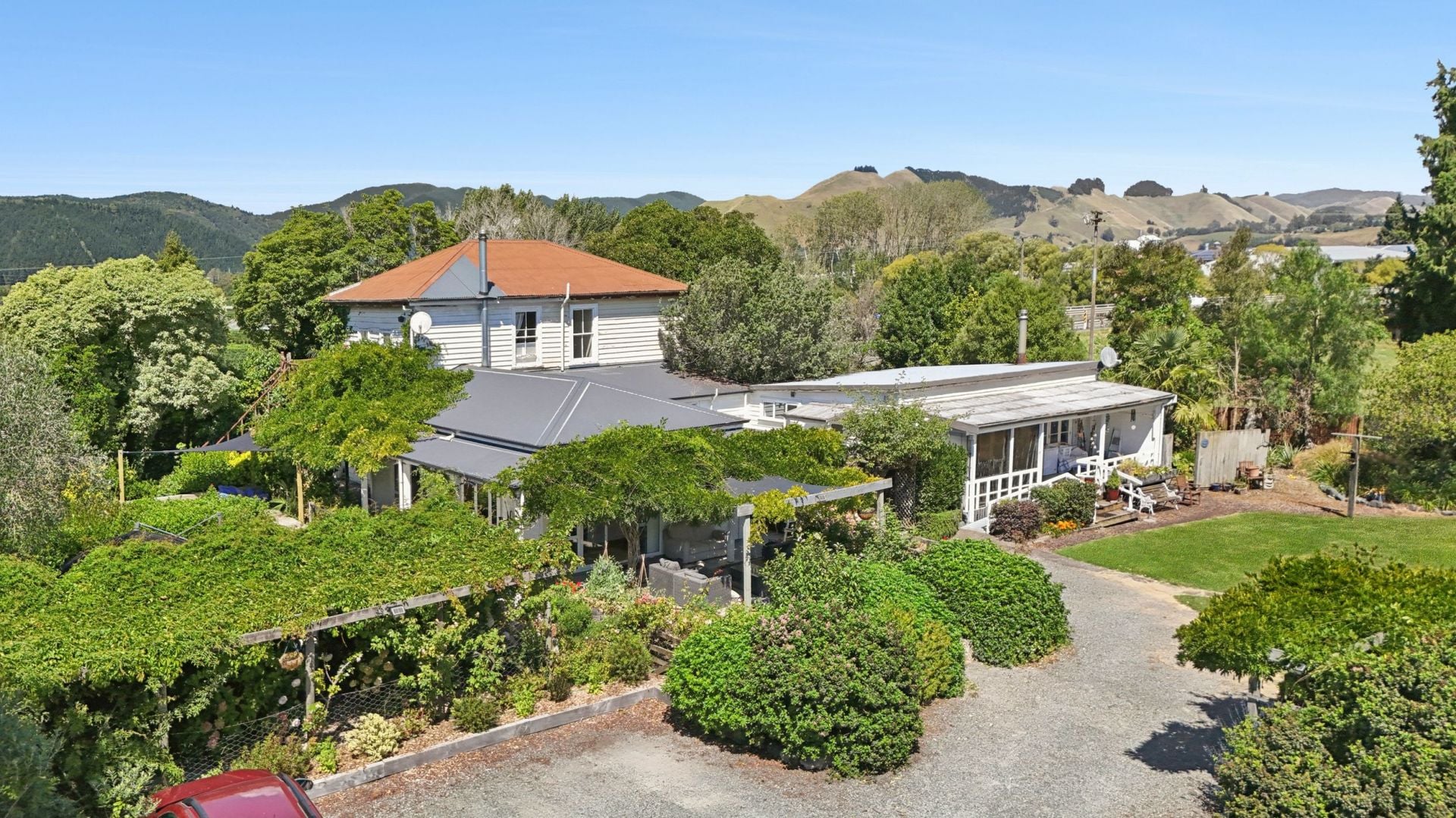 The beautifully renovated main villa is full of character and charm, offering six spacious bedrooms and two modern bathrooms. Designed for family living and entertaining, it effortlessly combines timeless style with today's modern comforts. A stunning kitchen features an island breakfast bar, quality appliances, and a Falcon Classic Deluxe Range with double ovens and an induction cook top. Two large living areas are warm and cosy with some double glazing a heat pump and a centrally located wood burner.