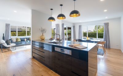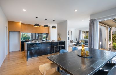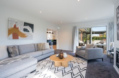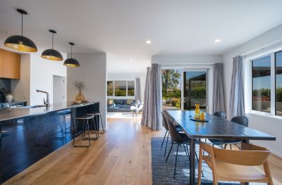 Impeccably crafted, the 241m² home showcases quality fittings, luxurious finishes, and a thoughtful layout perfect for both everyday living and entertaining. Light-filled open-plan spaces are enhanced by solid oak flooring, neutral tones, and large stacking sliders that connect effortlessly to sheltered decks and private outdoor areas. A separate formal lounge provides the ideal retreat for movie nights or hosting guests.