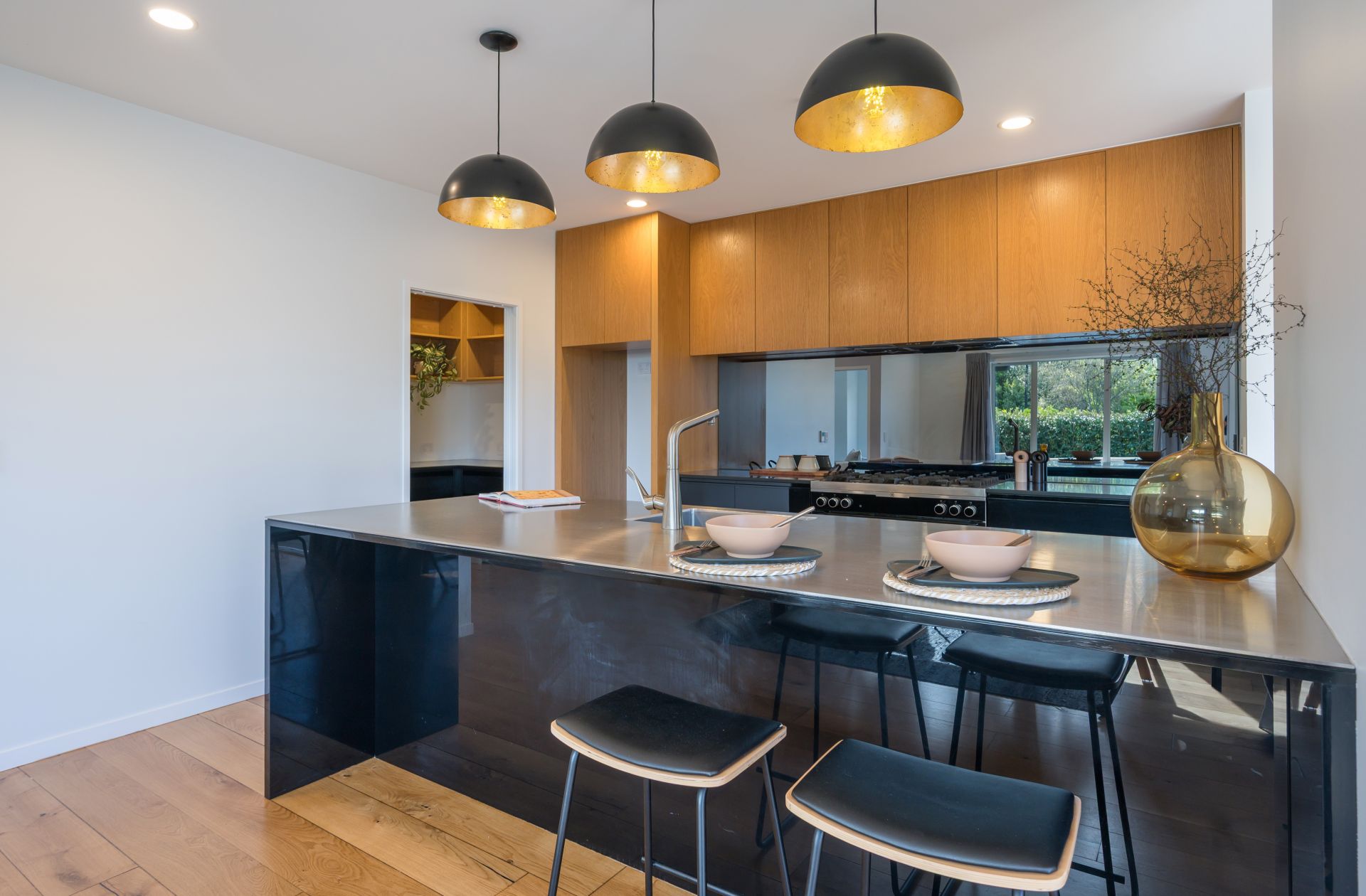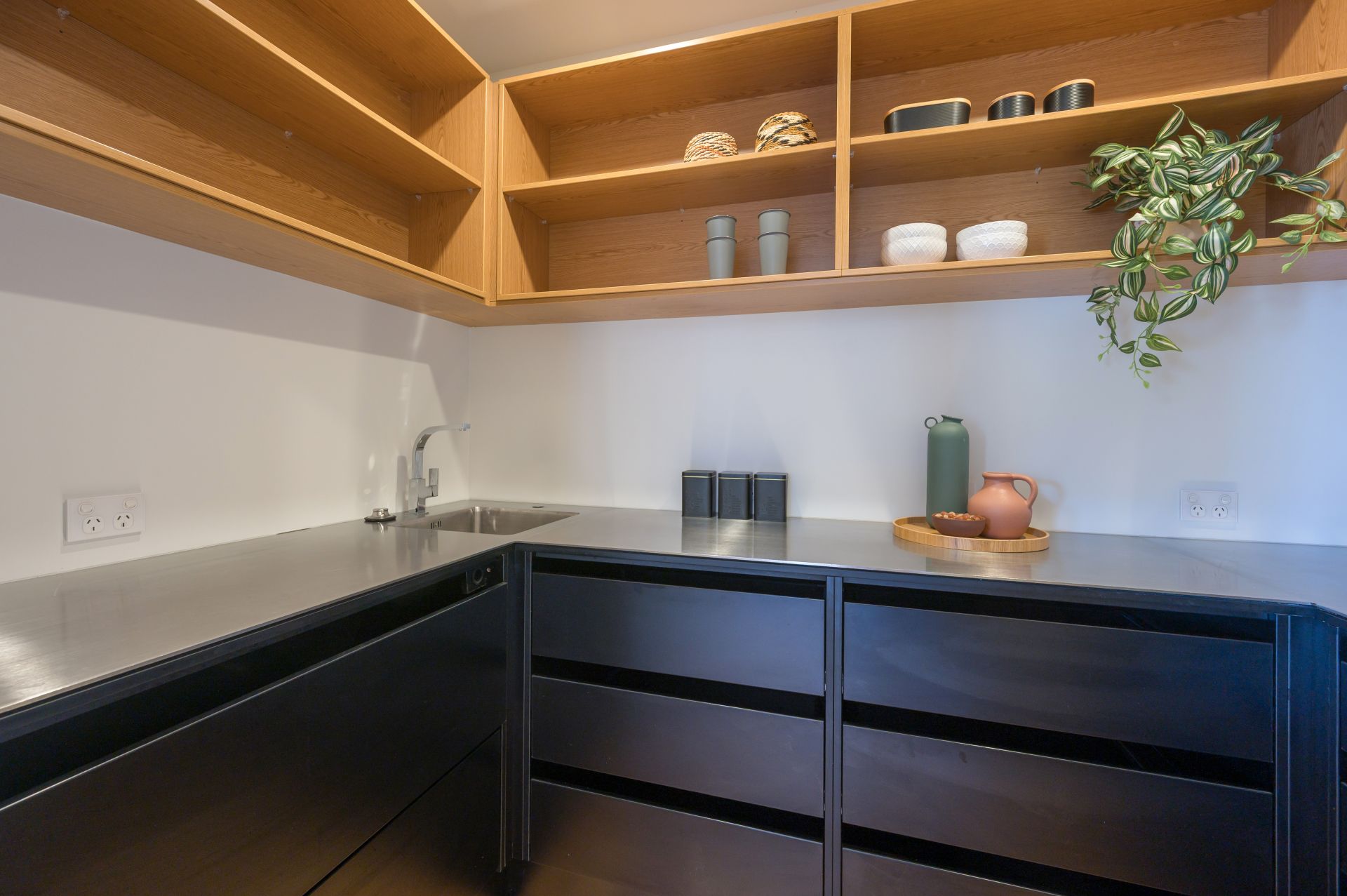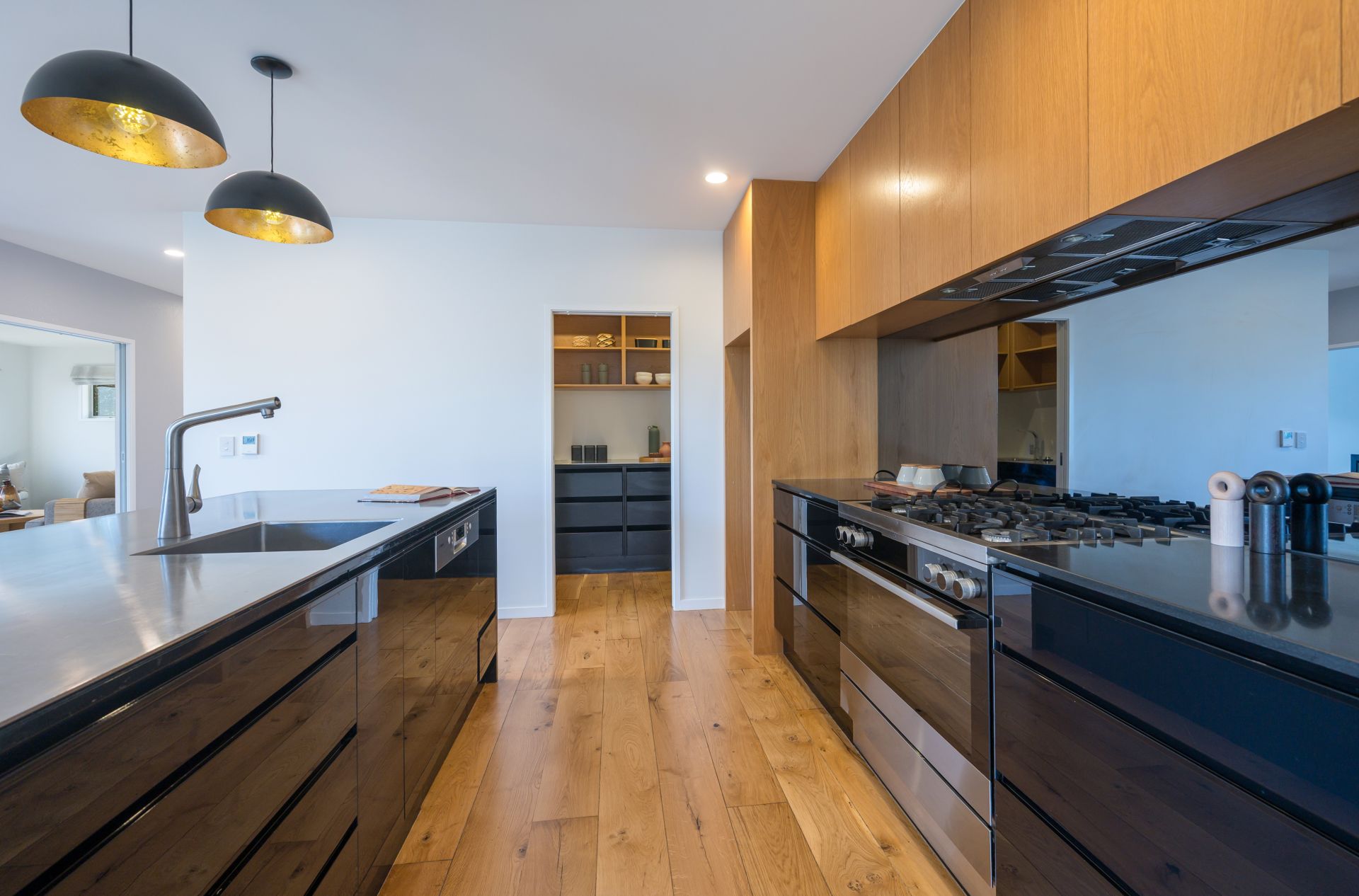 The stunning kitchen is a chefs dream – expansive stainless steel benchtops, a generous butler's pantry, and quality appliances, including a large electric range with gas hob.