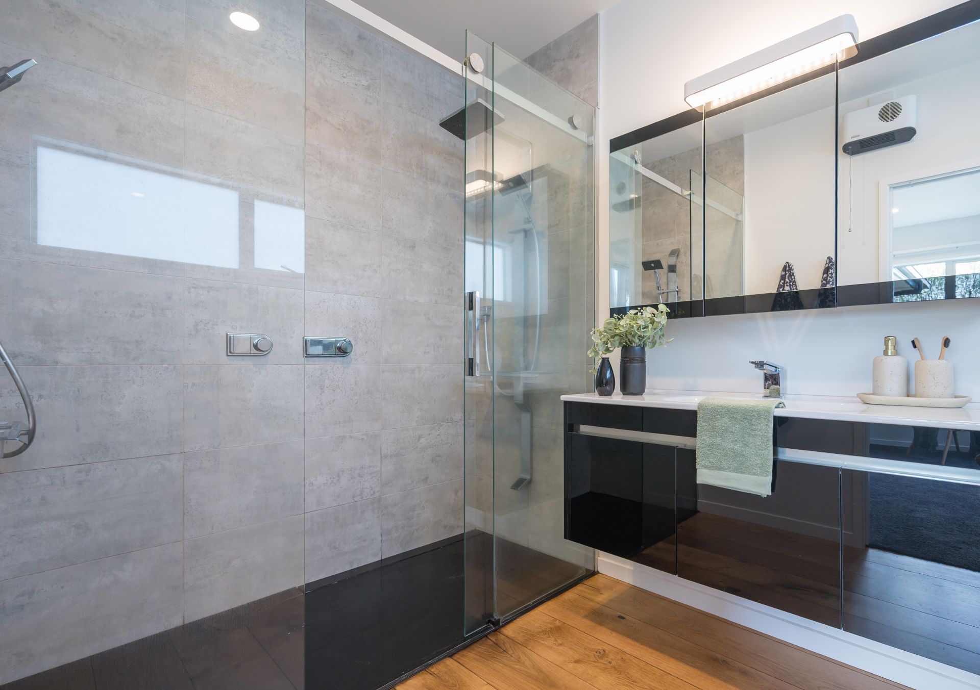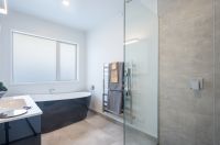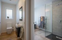 Accommodation is generous, with four double bedrooms. The master suite is a sanctuary in itself, featuring a walk-in wardrobe, a sleek en-suite with double shower, and access to a private deck. The family bathroom offers both a freestanding bath and oversized shower, while a separate toilet adds everyday convenience. A cleverly designed office nook provides an ideal workspace or study hub.