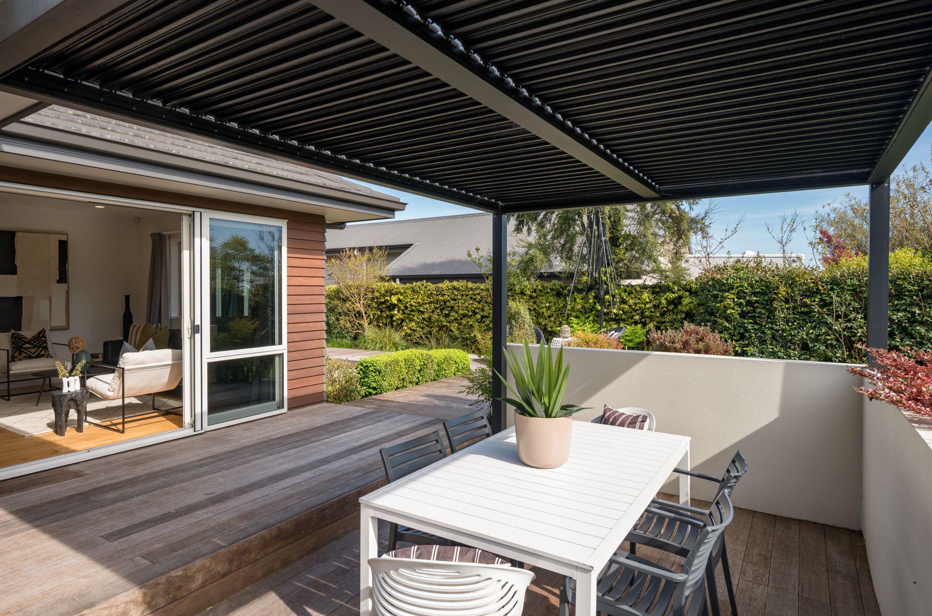 Set on a landscaped 653m² section, the property is designed for easy care living, with kwila decks, elegant walkways, and durable tiger turf lawns. Perfect for busy lifestyles or frequent travellers, it's a true lock-up-and-leave. The internal-access double garage is complemented by excellent off-street parking for multiple vehicles.