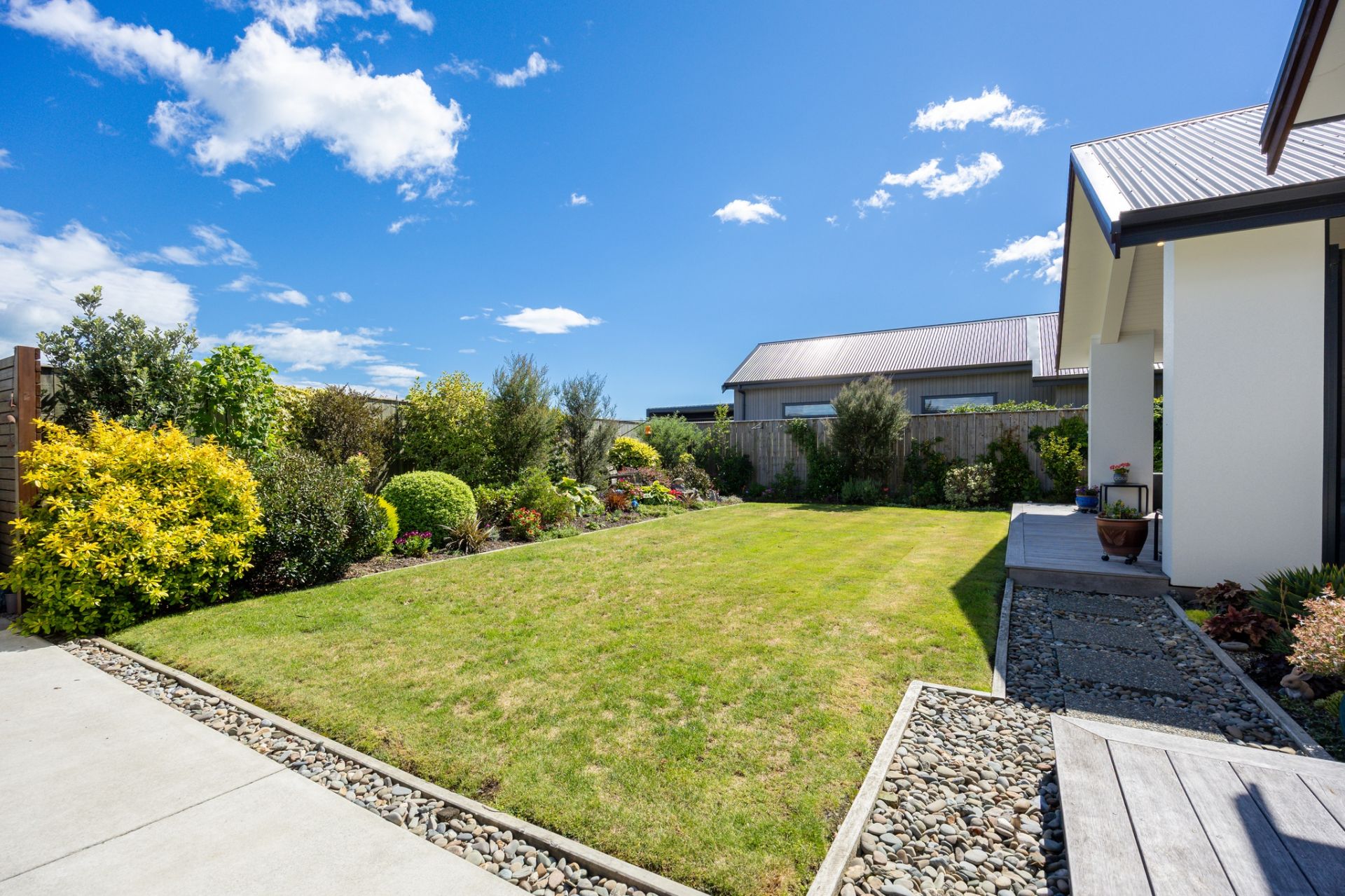 Outdoors, the fully fenced section offers manicured lawns, easy-care gardens, wrap-around kwila decking, and a sun-soaked alfresco dining area. A separate workshop adds appeal for the hobbyist or home handyman.