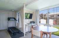 Downstairs, the self-contained area has its' own switch board and is ideal for extended family, guests, or teens, featuring a double bedroom, spacious living area, kitchenette, bathroom, and a heat pump.