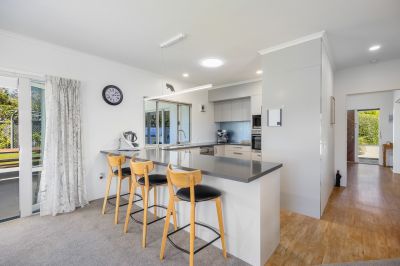 The spacious kitchen is the heart of the home, with expansive benchtops, a welcoming breakfast bar, & quality appliances including an induction cooktop. The open-plan kitchen, dining & living areas flow into a large enclosed entertaining space ideal for year-round gatherings, while a generous separate lounge provides a quiet retreat.