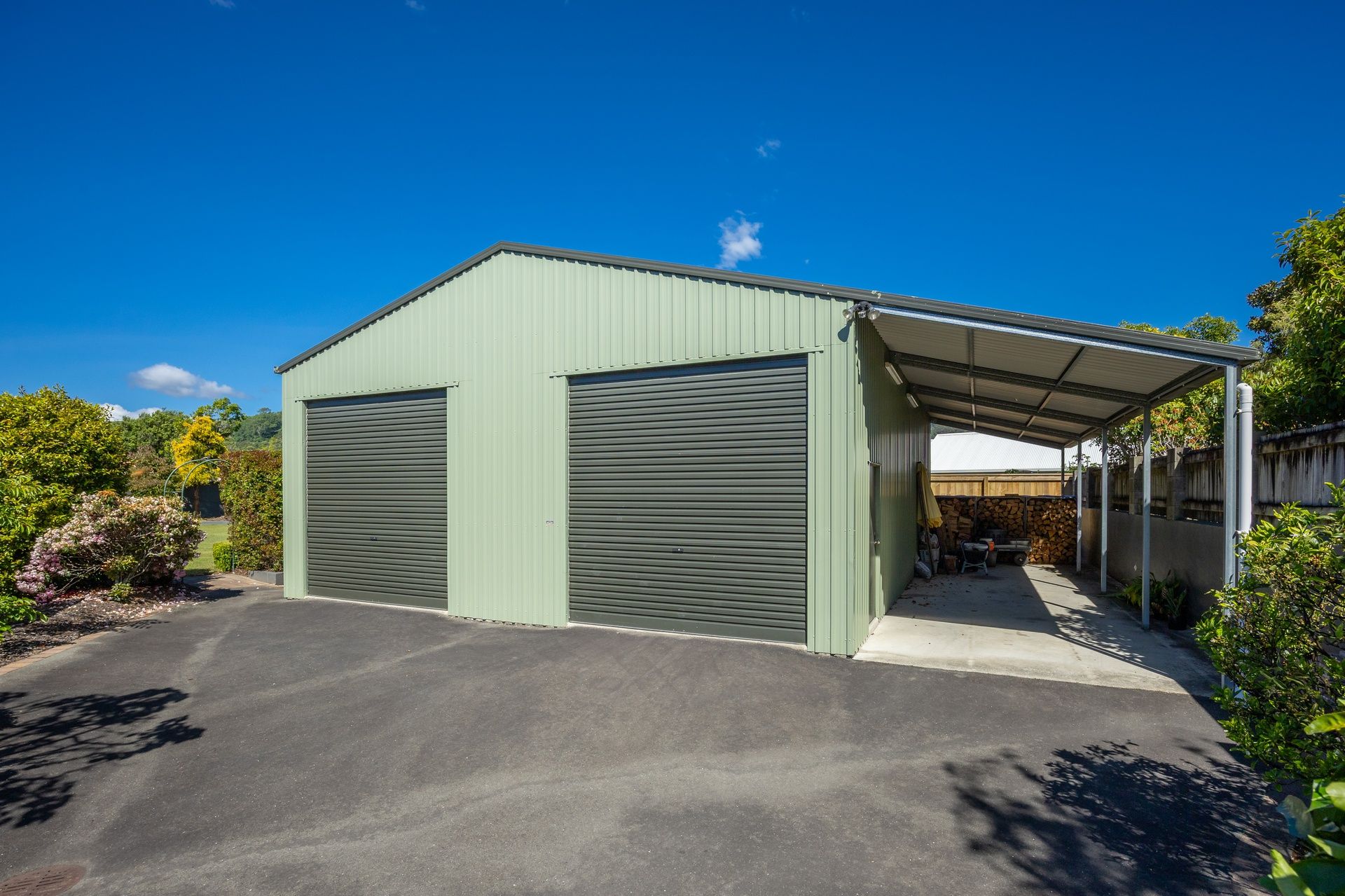 The standout feature is the phenomenal garaging and workshop facilities. A massive 106sqm garage/workshop has a mezzanine level and is fully lined, insulated, heated, and fitted with oversized auto doors – it offers an exceptional space for car enthusiasts, hobbies or serious storage. Combined with the double internal-access garage and a 36sqm carport for the boat or camper, the garaging here is in a league of its own.